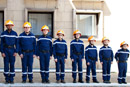 Das knallige Rot des kompletten Fuhrparks stach kontrastvoll in den blauen Himmel.