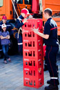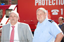 Das knallige Rot des kompletten Fuhrparks stach kontrastvoll in den blauen Himmel.