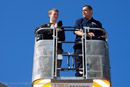 Das knallige Rot des kompletten Fuhrparks stach kontrastvoll in den blauen Himmel.