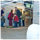 Hier werden die Teilnehmer vor eine ihnen völlig neue Aufgabe gestellt, auf die sie flexibel reagieren und für die sie Lösungen finden müssen. Sich zielführend zu organisieren, Arbeitsabläufe selbst zu gestalten und sich immer wieder neuen Situationen anpassen zu können, sind Kompetenzen, die die Teilnehmerinnen und Teilnehmer während des Werkstattprojektes zeigen und optimieren können. Begleitet werden sie dabei von den beiden Künstlern NIKKO (L) und Gottfried Bräunling (D).